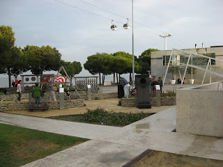 Unfortunately, it was sprinkling and overcast when I got to Lisbon so I camped in my room looking at options and hoping for the weather to clear. I discovered most museums were closed today and so I decided to just walk around the hotel area. It is a new area called Parque das Nações, developed for the 1998 wold exposition. There is a large riverfront promenade, parks, several museums, and a mall with lots of shops. The mall was also full of people avoiding the rain. The mall was not very interesting and the rain stopped so I headed to the promenade and walked along the river. One little park along the way had some percussion instruments like bells, marimbas, gongs, etc. Everyone seemed to enjoy it. There was a also a skyway I took, in part to avoid the rain that had gone from sprinkle to drizzle.